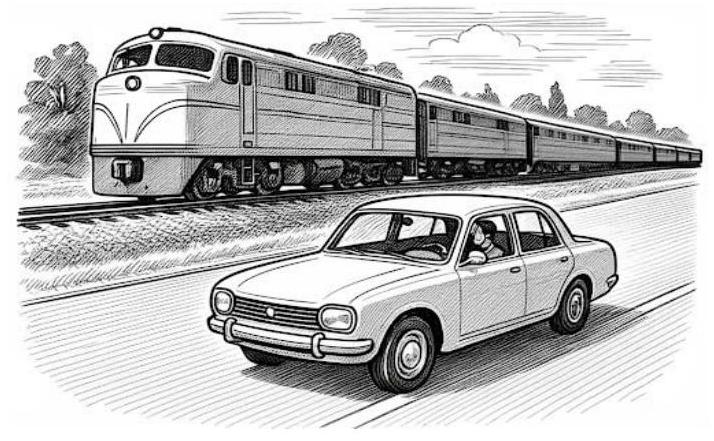 d) Ô tô bắt kịp tàu khi $s_{\text{oto}} = 100 + s_{\text{tau}}$