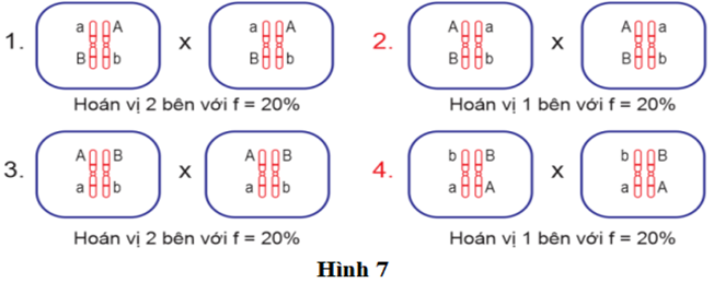 Một học sinh đã vẽ cơ sở tế bào học để giải thích các khả năng có thể tạo được F1 (như trên) từ 4 phép lai P (1, 2, 3, 4) như Hình 7.