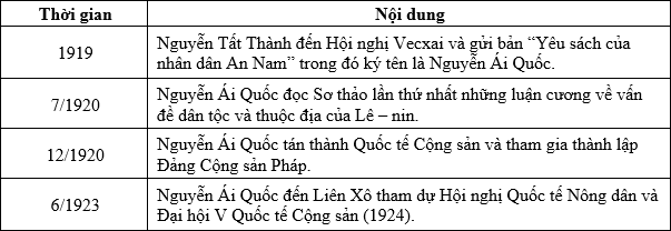 | a) Bảng thông tin trên ghi nhận những hoạt động của Nguyễn Ái Quốc khi đang ở ngoài nước. | ||