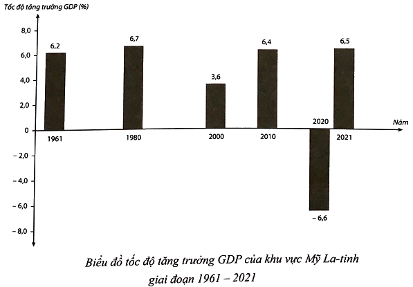 - Nhận xét chung về tốc độ tăng trưởng GDP của khu vực Mỹ La-tinh giai đoạn 1961 – 2021, sau đó nhận xét từng giai đoạn.