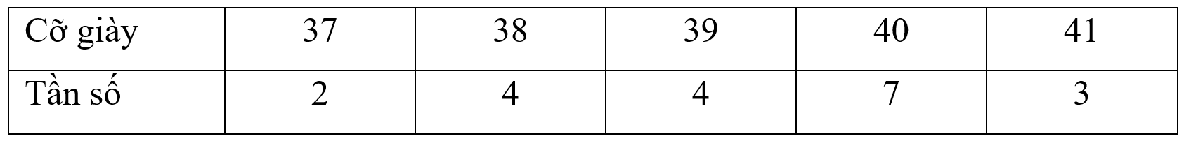 Một cửa hàng ghi lại cỡ của các đôi giày đã bán trong một ngày và thu được kết quả như