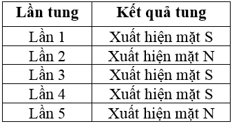 Tung một đồng xu 5 lần liên tiếp, ta có kết quả như bảng bên. Hỏi tỉ số giữa số lần