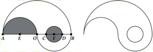 Một công ty thiết kế một logo là hình bao gồm một nửa hình tròn lớn có bán kính $\text{OA} =