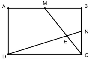 Cho hình chữ nhật ABCD với AB = 16 cm và AD = 10 cm. Gọi M, N lần lượt là trung điểm của đoạn thẳng AB và BC. Các đoạn thẳng MC và ND cắt nhau tại E. Tính diện tích của tứ giác BMEN.
