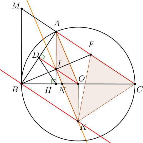 Chứng minh AI là đường trung bình của $\Delta FMB$ suy ra A là trung điểm MF.