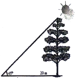 Bóng của một cái cây do ánh nắng mặt trời chiếu xuống mặt đất dài 20 m. Biết rằng các tia sáng của ánh nắng mặt trời song song với nhau và tạo với mặt đất một góc 45° (tham khảo như hình vẽ bên). Chiều cao của cái cây đó là