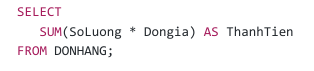 | a) Để tính thành tiền cho một hóa đơn của một khách hàng khi biết số lượng và đơn giá cần truy xuất các bảng DONHANG và KHACHHANG. | ||