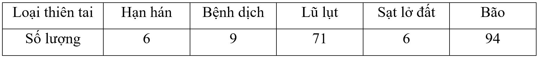d) Lập bảng tần số cho dữ liệu được biểu diễn trên biểu đồ số lượng các thiên tại ở hình bên.
