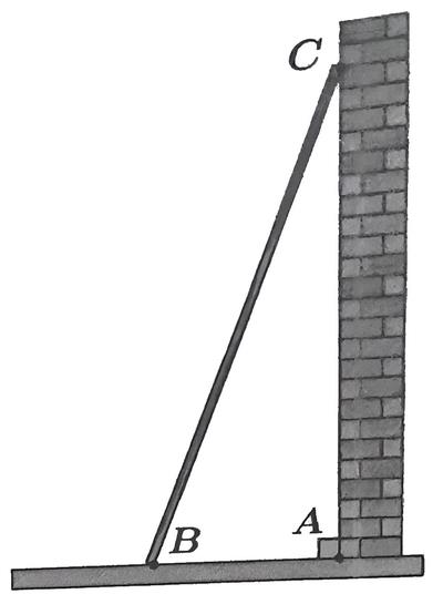 Bác An đặt một khúc gỗ thẳng dựa vào một vách tường. Vị trí chạm đất, chạm tường của khúc gỗ được mô tả tương ứng là điểm B và C (tham khảo hình vẽ bên). Biết rằng BC = 3m, khoảng cách từ B đến chân tường là AB = 1m.
