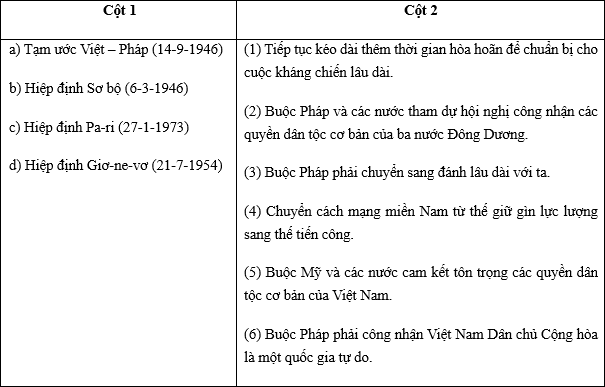 - Xác định nội dung cột 2 tương ứng với các giai đoạn của cột 1.