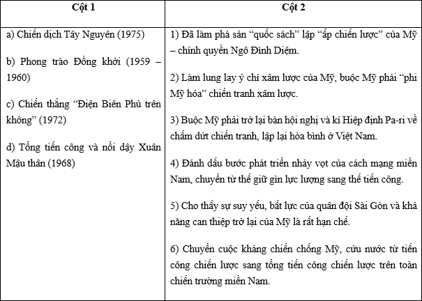 - Xác định nội dung cột 2 tương ứng với các giai đoạn của cột 1.