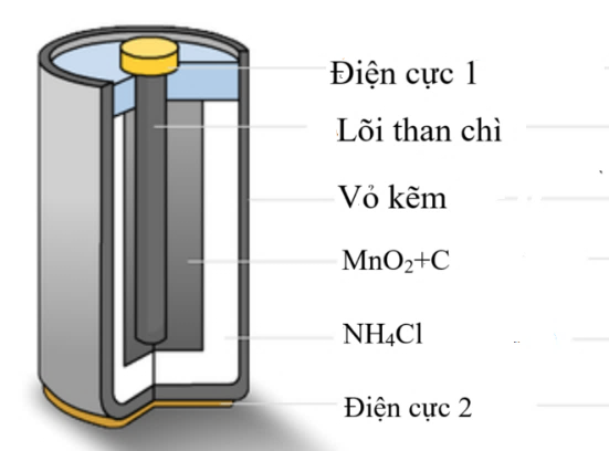 Hình vẽ sau đây mô tả cấu tạo của loại pin khô.