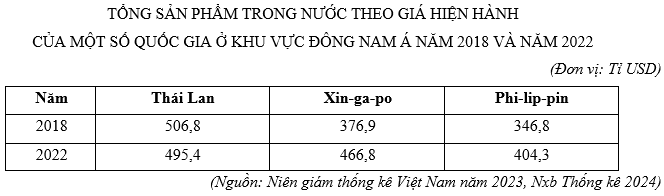 Dựa vào các từ khoá: tổng sản phẩm trong nước, năm 2018 và năm 2022.