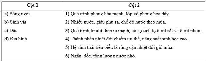 Dựa vào nội dung biểu hiện thiên nhiên nhiệt đới ẩm gió mùa nước ta (phần sông ngòi, sinh vật, đất, đại hình).