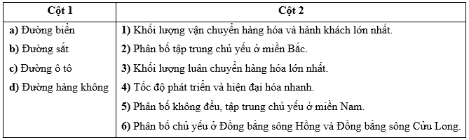Dựa vào nội dung ngành giao thông vận tải nước ta.