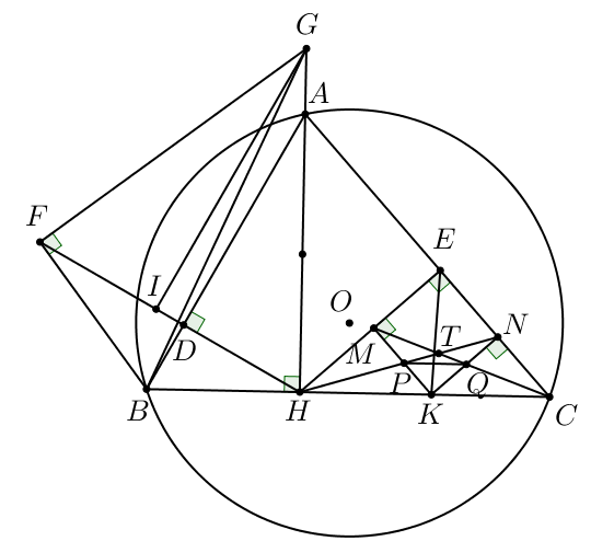 Xét $\Delta EPQ$ có QJ và PL là đường cao cắt nhau tại T nên T là trực tâm