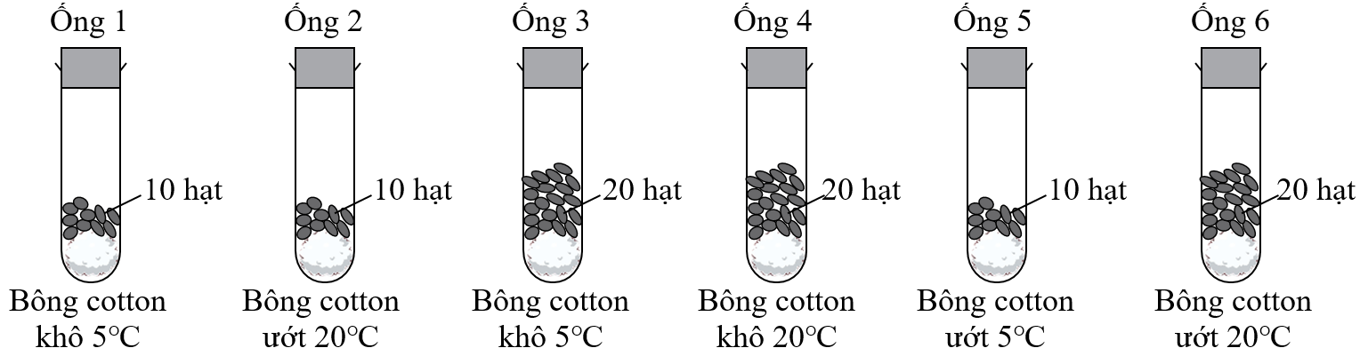 Một thí nghiệm sử dụng các hạt đậu đựng trong 6 ống nghiệm như hình dưới: