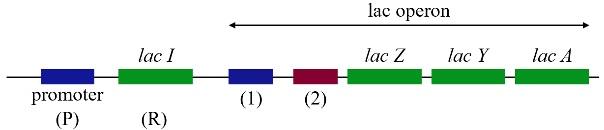 Hình dưới đây mô tả cấu trúc của operon lac theo Monod và Jacob?Theo mô hình này thì chú thích (1)