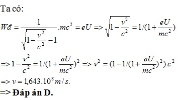 chương trình nâng cao Tốc độ của một electron tăng tốc qua hiệu điện thế 10 5 V