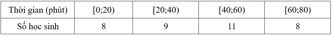 Khảo sát thời gian tập thể dục trong ngày chủ nhật của một số học sinh lớp 9E thu được mẫu số liệu ghép nhóm sau: