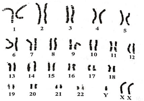 Hình bên mô tả nhiễm sắc thể của một tế bào ở người mắc hội chứng Klinefelter. Số lượng NST trong tế bào sinh dưỡng của người này là bao nhiêu?
