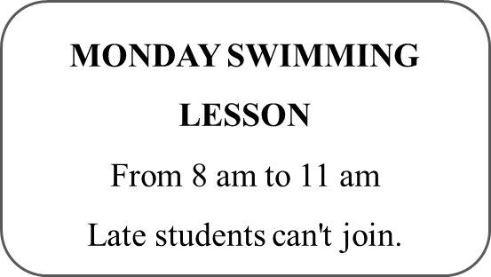 Sign: Late students can’t join. (Swimming class 8–11 AM)