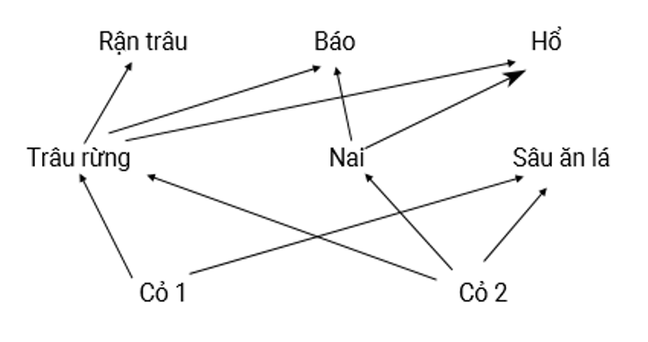 Xác định chuỗi thức ăn bắt đầu bằng cỏ 1 và cỏ 2.
