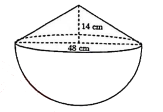 b) Bác Hoa mua một thúng muối vun đầy, cái thúng có dạng nửa hình cầu với đường kính 48 cm, phần muối vun lên có dạng hình nón với chiều cao 14 cm (hình vẽ bên). Bác Hoa cần phải sử dụng ít nhất bao nhiêu thùng nhựa như trên để đựng hết lượng muối đã mua.