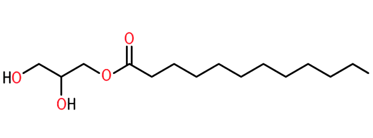 Monolaurin là hợp chất có tác dụng kháng khuẩn, kháng virus và kháng vi trùng khác trong ống nghiệm. Công thức cấu tạo của monlaurin như sau: