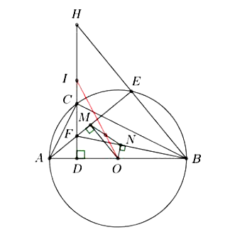 Cho nửa đường tròn tâm O, đường kính AB. Trên nửa đường tròn (O) lấy diểm C sao cho $CA < CB$, kẻ CD vuông góc với AB, D thuộc AB. Gọi F là một điểm trên đoạn C D (F khác C và D), tia AF cắt nừa đường tròn (O) tại E.