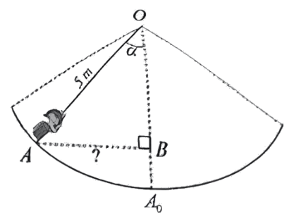 1) Nước ta có rất nhiều trò chơi dân gian, trong đó có trò chơi đánh đu. Khi người chơi nhún đều, dây đu sẽ đưa người chơi dao động quanh vị trí cân bằng $A_{o}$. Trong hình minh họa bên, người chơi đang ở vị trí $A$ với $OA = 5\, cm$ và dây $OA$ tạo với phương thẳng đứng $OA_{o}$ một góc $\alpha = 30^{o}.$Tính độ dài đoạn thẳng $AB$ là khoảng cách từ vị trí $A$ đến đường thẳng $OA_{o}$.