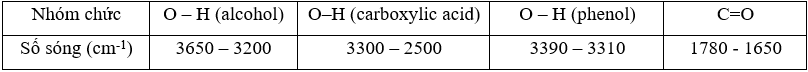 Cho bảng tín hiệu hấp thụ hồng ngoại (phổ IR) của một số loại nhóm chức như sau: