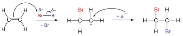 Phản ứng bromine hóa ethylene xảy ra theo cơ chế như sau: