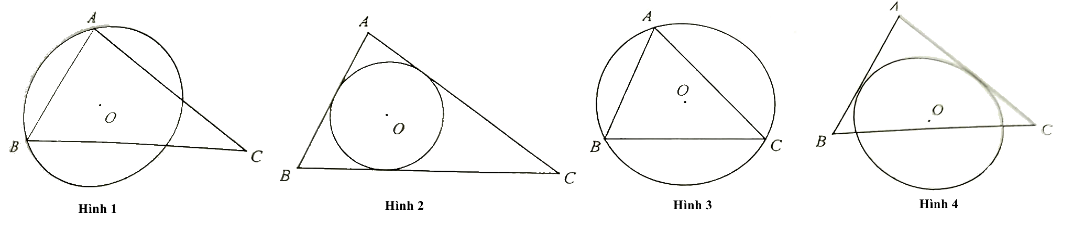 Hình nào sau đây biểu diễn đường tròn (O) nội tiếp $\Delta