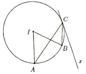 Cho đường tròn tâm I (như hình vẽ bên), góc nào sau đây là góc ở