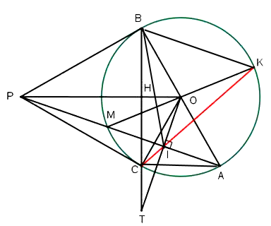 Suy ra bốn điểm O, B, P, C cùng thuộc đường tròn đường kính OP.