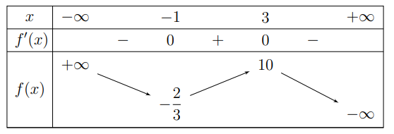Cho hàm số $y = f(x)$ liên tục trên ${\mathbb{R}}~$và có bảng biến thiên như hình bên.Hàm số đã
