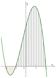 | c) ${\int\limits_{- 2}^{2}{\left| {f(x)} \right|\text{~dx}}} = {\int\limits_{- 1}^{2}{f(x)\text{~dx}}} - {\int\limits_{- 2}^{- 1}{f(x)\text{~dx}}}$ | ||