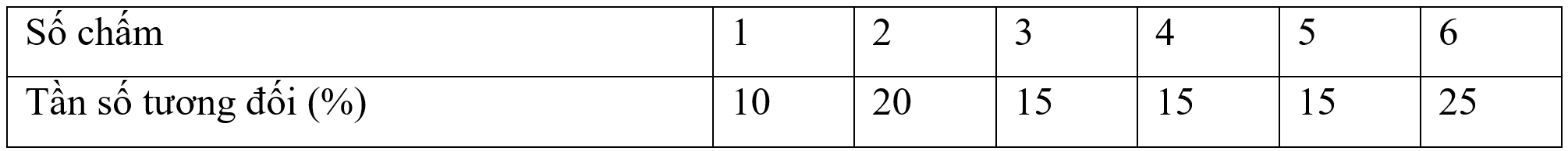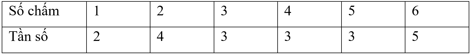 6.1 Gieo một con xúc xắc 20 lần tiêp tiếp, ghi lại số chấm trên mặt xuất hiện của xúc xắc,