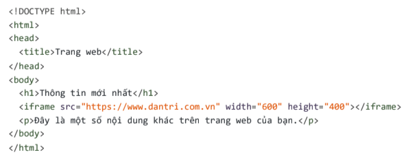 HTML: Thẻ <iframe> dùng để nhúng website khác vào khung trang hiện tại