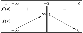 Cho hàm số $f(x)$ xác định trên $\left( {- \infty;0} \right)\backslash\left\{ {- 2} \right\}$ và có bảng