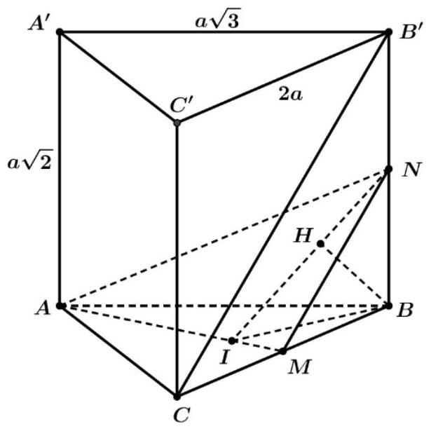 Cho hình lăng trụ đứng $ABC \cdot A'B'C'$ có đáy $ABC$ là tam giác vuông tại $B$ và có độ dài các