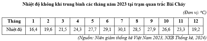 Cho bảng số liệu: Căn cứ vào bảng số liệu trên, hãy cho biết nhiệt độ