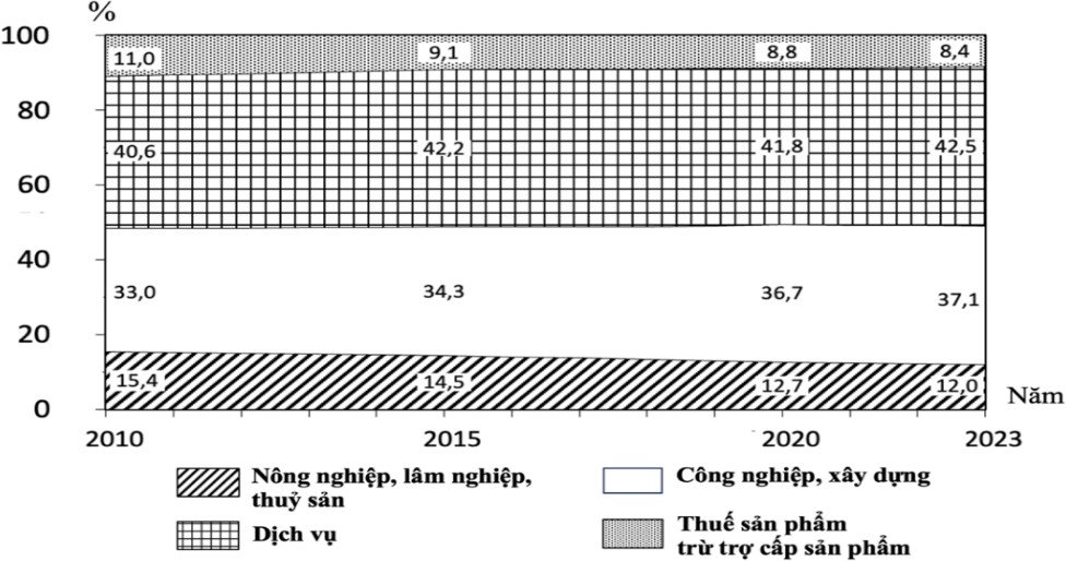 Cơ cấu GDP của nước ta phân theo khu vực kinh tế, giai đoạn 2010 – 2023