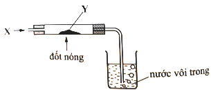 Khi kết thúc thí nghiệm, màu của Y chuyển từ màu đen sang đỏ và cốc nước vôi trong bị vẩn đục. X và Y có thể là