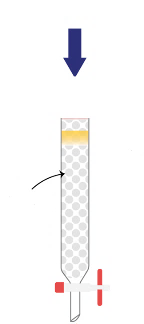 Một học sinh sử dụng sắc ký cột để tinh chế hợp chất hữu cơ A (không màu) có lẫn tạp chất màu vàng có phân cực cao hơn. Biết chất hấp phụ là silica gel, dung môi sử dụng là hỗn hợp ethyl acetate : hexane (1:4).