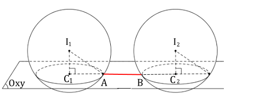 Trong không gian với hệ tọa độ $Oxyz$ có hai trạm phát sóng wifi với ranh giới vùng phủ sóng của trạm thứ nhất, trạm thứ hai lần lượt cho bởi các mặt cầu$\left( S_{1} \right):{(x - 5)}^{2} + {(y + 6)}^{2} + {(z - 15)}^{2} = 22725$; $\left( S_{2} \right):{(x - 1005)}^{2} + {(y - 219)}^{2} + {(z - 15)}^{2} = 22725$