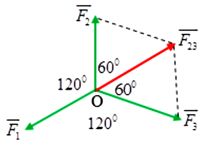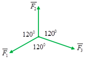 Cho ba lực đồng quy cùng nằm trong một mặt phẳng, có độ lớn bằng nhau và từng đôi một làm thành góc \({120^0}\) (hình vẽ). Tìm độ lớn hợp lực của chúng. (Đơn vị: N).