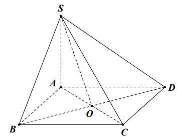 Cho hình chóp tứ giác $SABCD$ có đáy là hình vuông cạnh bằng 2 , cạnh bên $S A$ vuông góc với