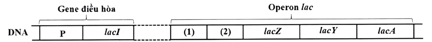 Hình dưới đây mô tả cấu trúc của gene điều hoà và operon lac ở vi khuẩn E. coli theo Monod và Jacob.
